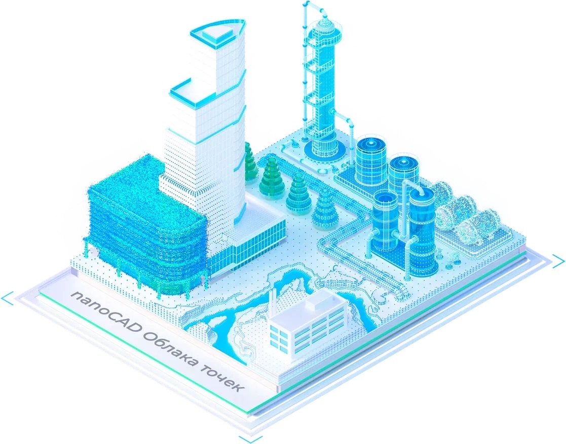 nanoCAD Облака точек содержит обширный инструментарий обработки данных, открывающий большие возможности при работе с облаками точек и позволяющий решить практически любую задачу. nanoCAD Облака точек работает как вертикальное приложение САПР-платформы nanoCAD, что позволяет создать единую инженерную экосистему для обработки данных 3D-сканирования и их дальнейшего использования в других программных продуктах.Поддержка самых распространенных обменных форматов (LAS, PTS, PTX, PCD, XYZ, E57, PLY, RCS/RCP), используемых в лазерном сканировании, позволяет работать с данными, полученными из разных источников. Больше нет необходимости подстраивать рабочий процесс под конкретного производителя оборудования